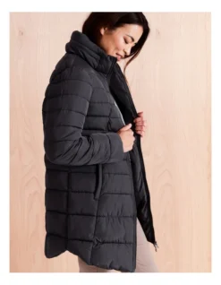 Regatta Recycled Polyester Long Line Straight Quilted Jacket With Fold Away Hood In Charcoal