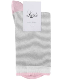 Levante Lina Cotton Rich Fine Stripe Crew Length Socks Creme/Ink
