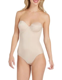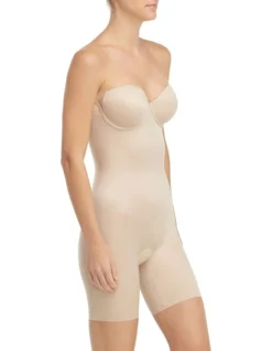 Spanx Suit Your Fancy Strapless Cupped Mid Thigh Bodysuit Beige