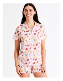 SOHO Organic Cotton Knit Short Sleeve Sleep Top Nap Queen In Pink