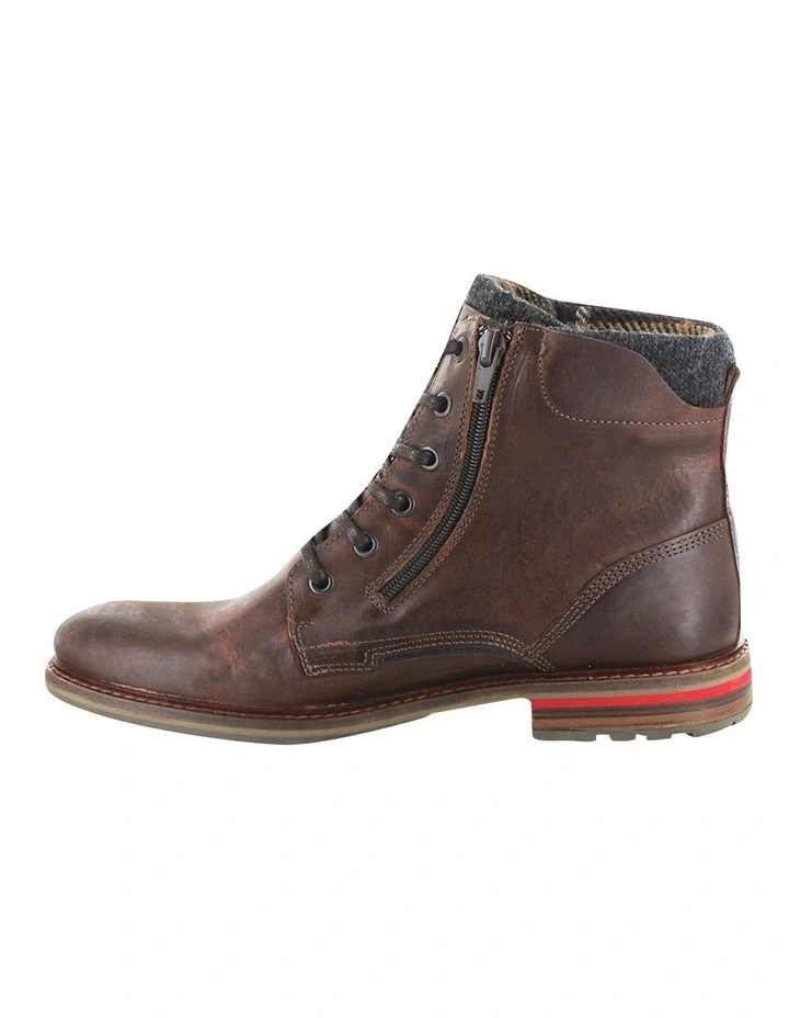 First grade premium leather lace up boot, made in Portugal, set on a sturdy rubber outsole with twin zips.
