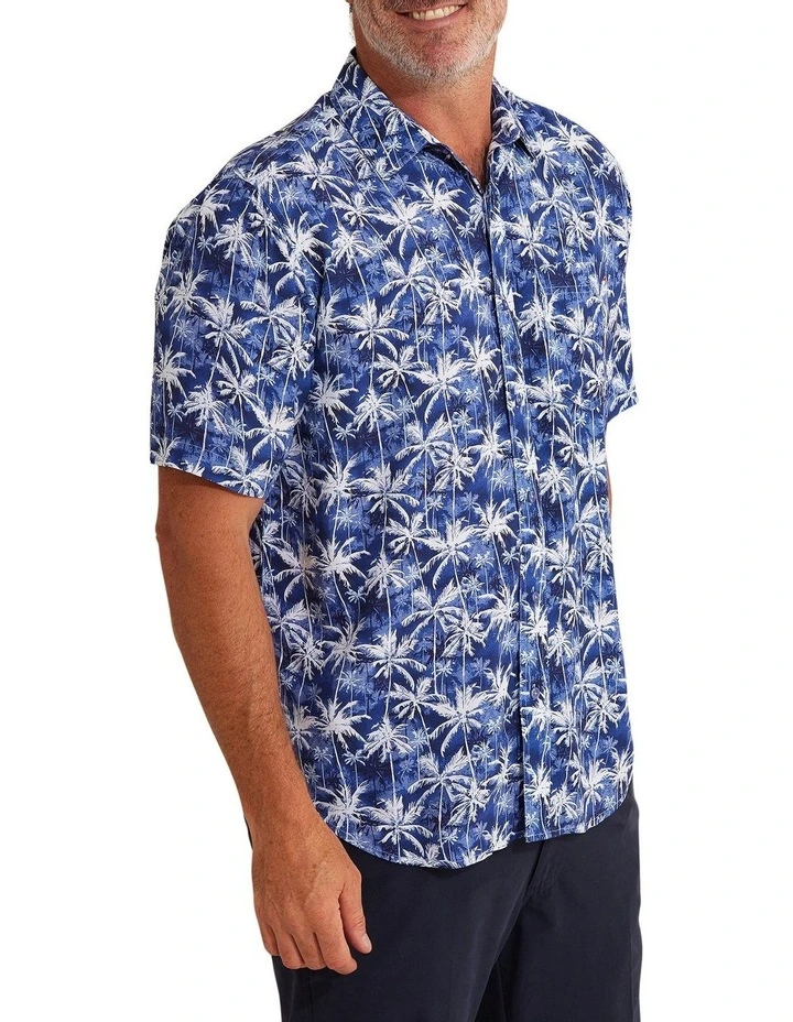 Hello Wyndrow! Crafted in 100% Bamboo, this blue based tropical palm print will keep you cool as it takes you from day to night this summer. Our loose fit, back pleat and curved hem adds extra style and comfort.