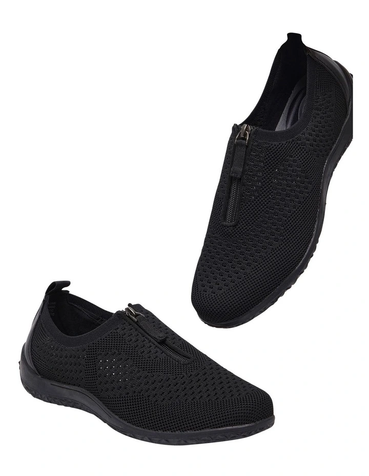 Casual and comfortable, with our Zip Front Sneaker, stylish and minimalist features a soft flyknit upper with centre front zip for easy access.The outsole is so flexible it can fold up into the palm of your hand! Coming in two colourways, purple and black, this must-have everyday style features an 8mm cushioned memory foam insole taking the burden off your feet so you can stay active for longer.